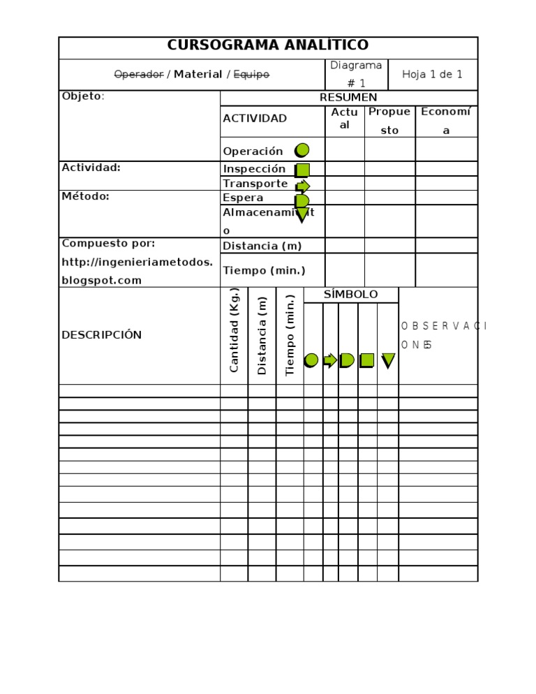 Constituyen instrumentos importantes para la visualizaci n global y esquem tica del conjunto de tareas administrativas. El cursograma anal tico es un diagrama que aborda un proceso de modo m s detallado que el diagrama sin ptico, ya que en l se encuentran incluidas e ilustradas las cinco actividades fundamentales.