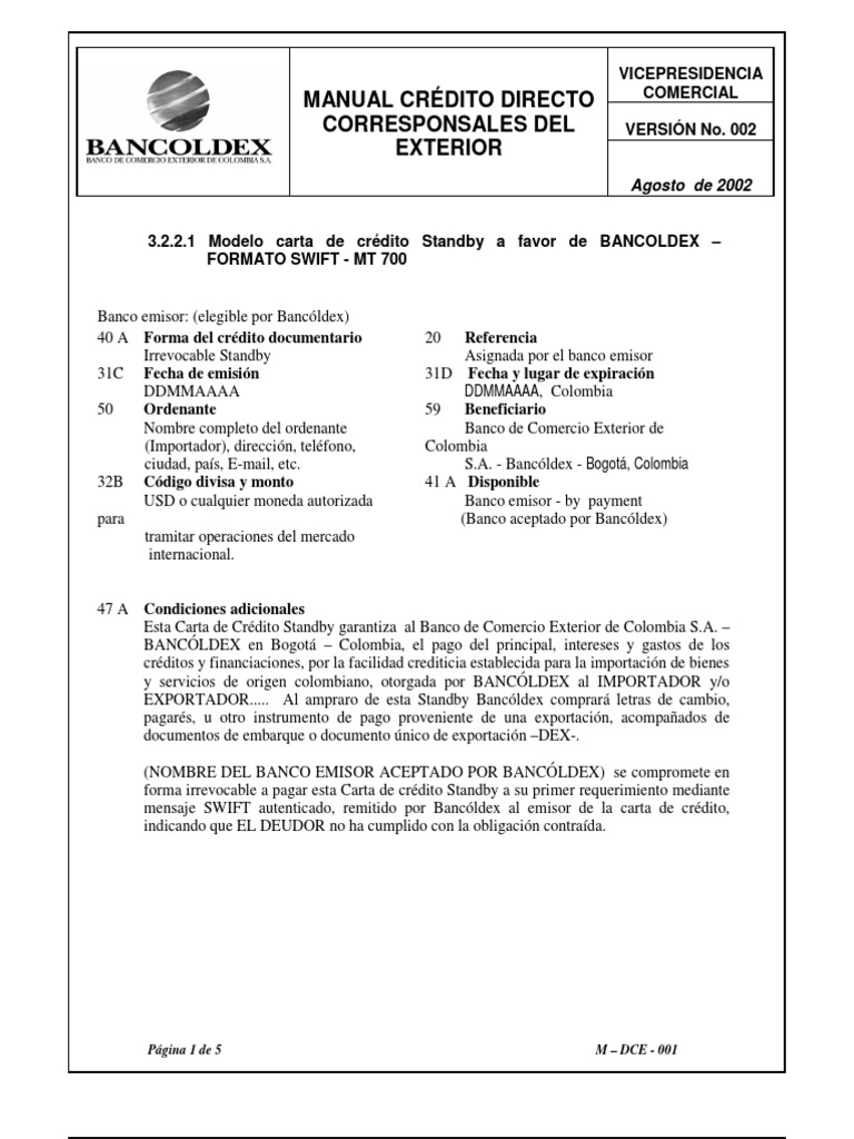 Plan de Internacionalizaci n de la Econom a Andaluza Horizonte 2020. Buenos d as me permito elevarle una consulta sobre un cr dito documentario de DE CREDITO. Por otra parte, en estos mercados es habitual que los importadores est n habituados a trabajar con cr ditos documentarios. CARTA DE CREDITO STAND BY: La carta de cr dito stand by implica una garant a bancaria muy usada en las licitaciones internacionales como por ejemplo el proceso de privatizaciones de empresas de orden p blico que se formaliz en nuestro pa s, desde principios de la d cada del 90.